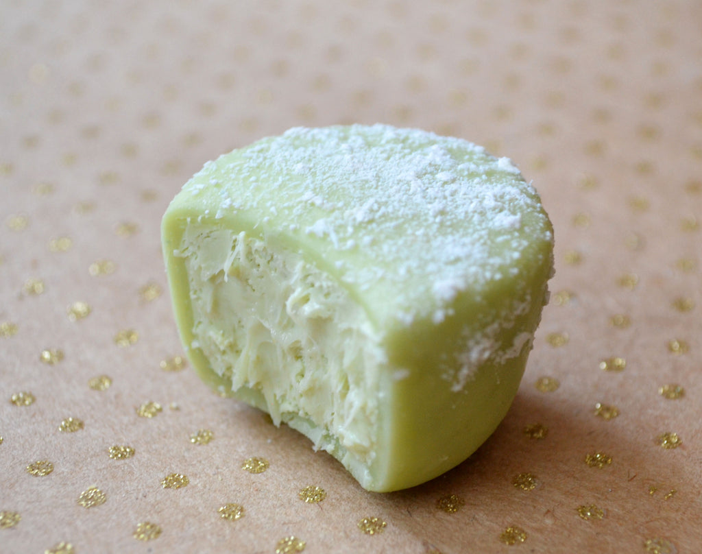 The mochi is around 1/5" with a strong magnet glued to the bottom!